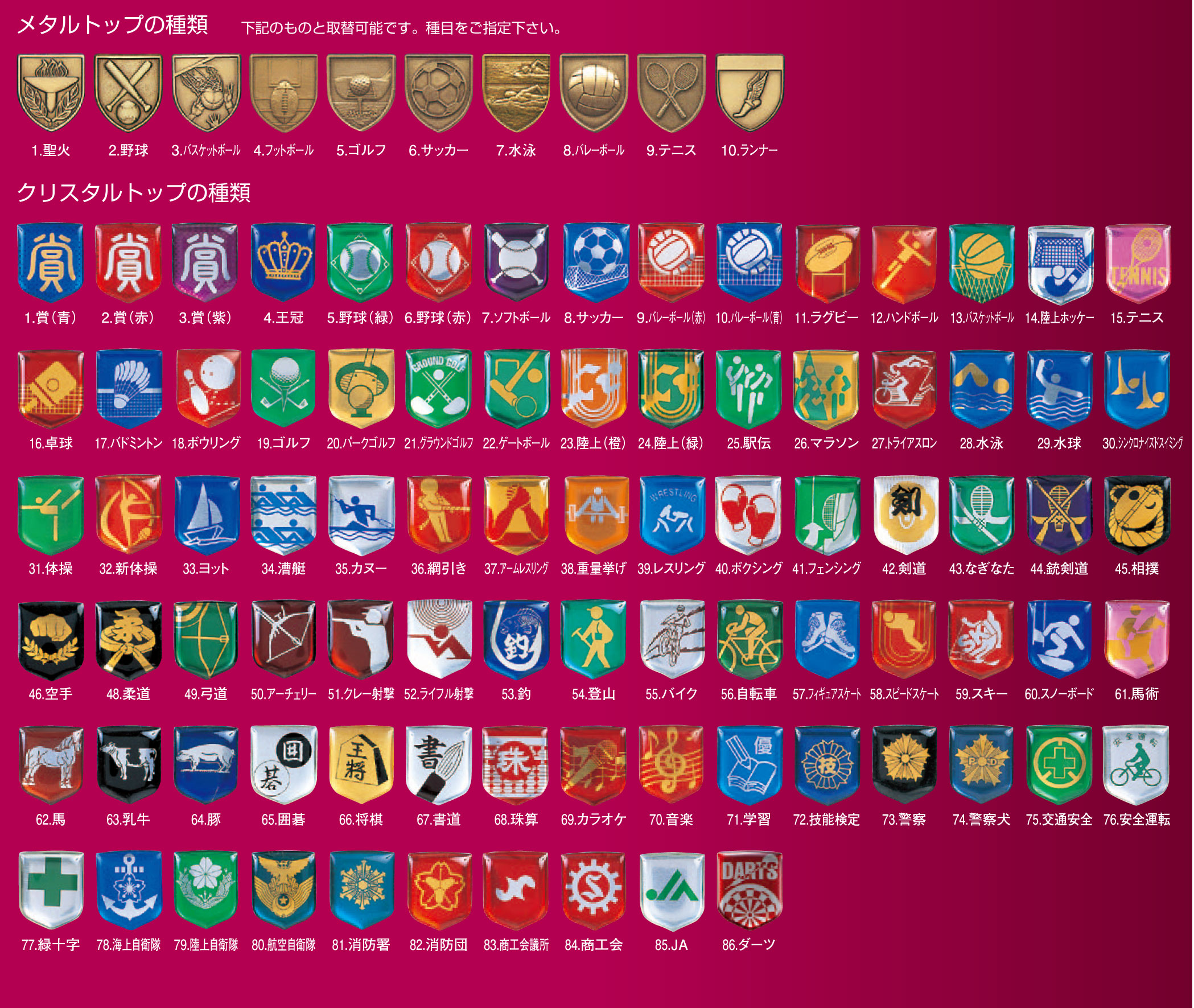 メダル上部についているクリスタルトップは柄がお選びいただけます。 お好みの柄をお知らせください。