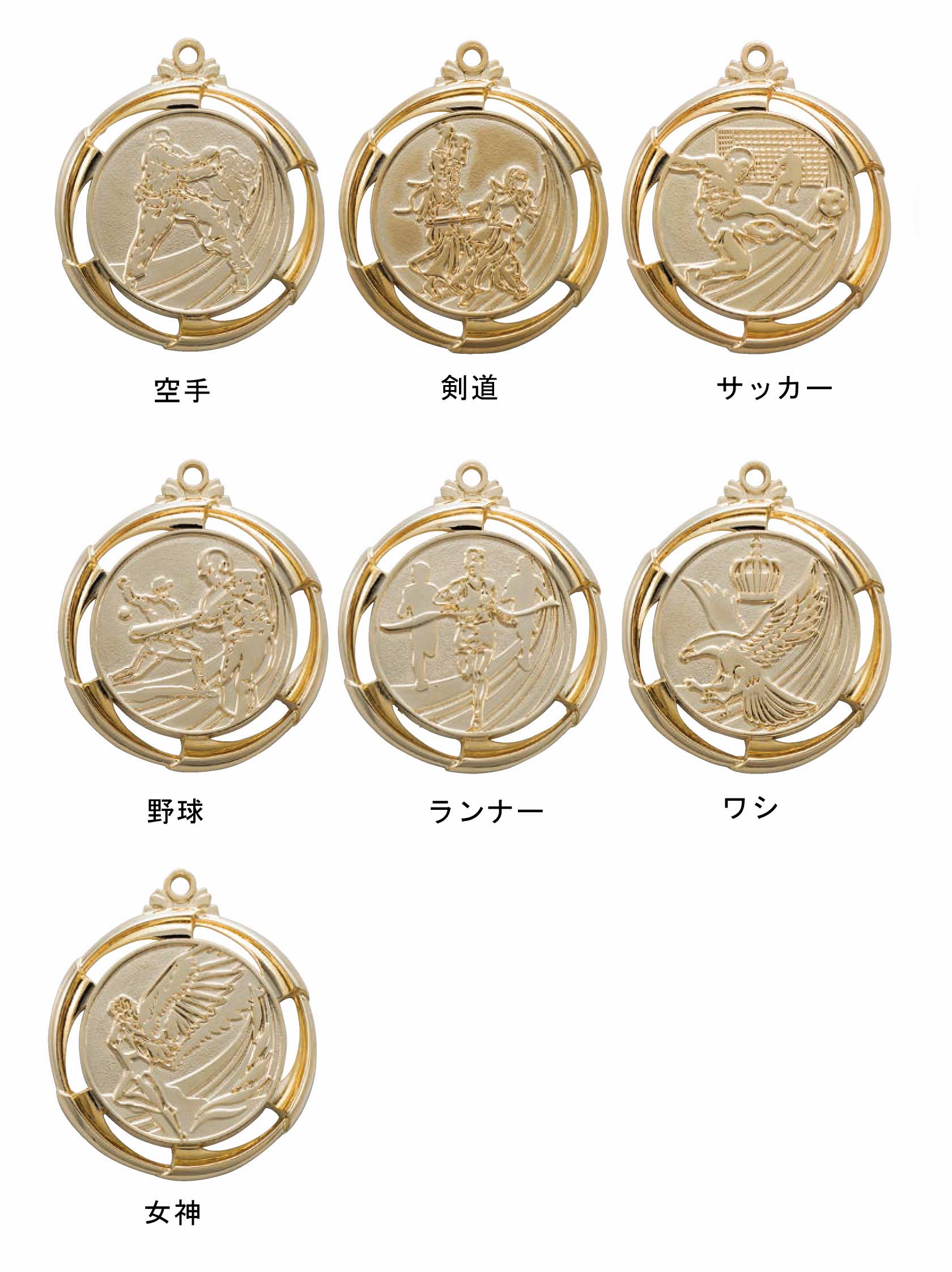 野球専用にデザインされたメダルの周囲を流れるようなモチーフが囲みます。 野球の大会やイベントにいかがでしょうか? メダルのお色は金・銀・銅がございます。