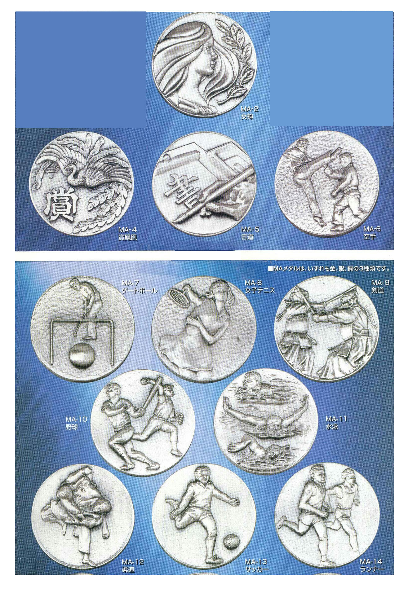 こちらメダルは35mm・45mm・50mm・60mm・70mmのシリーズがございます。詳しくは各サイズのページをご覧いただくかお問合せください。