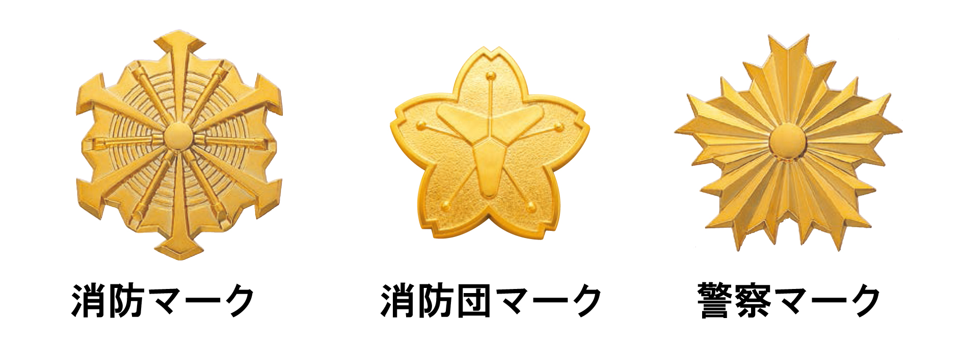 消防・消防団・警察の楯です。センターに輝くゴールドのレリーフがお選びいただけます。 落ち着きのあるシンプルな楯に、金色の華やかなレリーフが映えます。