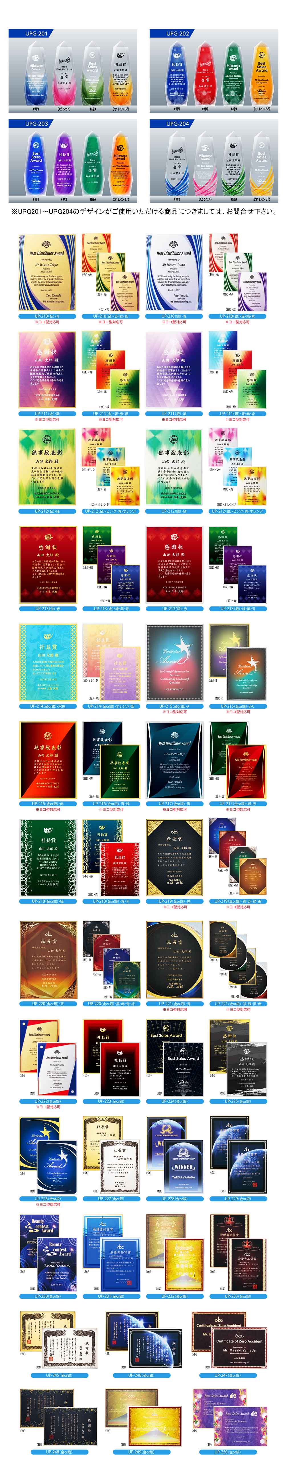 オリジナルデザイン部分はUVカラー印刷、サンドブラスト彫刻、2Dレーザー彫刻での加工がお選びいただけます。 UVカラー印刷はガラスに直接印刷するため鮮やかな発色が際立ちます。サンドブラスト加工はガラス面に微細な砂を当てて文字や絵柄を彫刻をする加工方法、2D加工はガラス内部に浮かんだように彫刻する加工方法です。 加工方法による価格の差はございません。 出来上がりイメージは無料でご連絡いたします。 ※ロゴが入る場合は追加料金がかかる場合がございます。お問合せください。 UVカラー印刷をご希望の場合は専用の選べる背景デザインのご用意がございます。背景デザインの利用をご希望の場合はリストよりお選びください。 ※リスト内のUPG201~UPG204の「ガラス・アクリル専用」デザインもご指定いただけます。