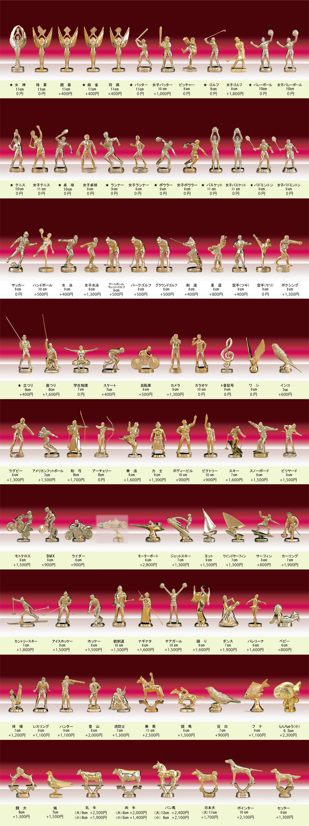 金色にネイビーが映えるモダンな印象のトロフィーが40%OFFのアウトレット価格でのご提供です。 トロフィーのサイズはFサイズのみとなります。 在庫限りとなりますので売り切れの際はご容赦ください。 トップのお人形がお選びいただけます。リストよりご指定下さい。 通常価格では全サイズのお取り扱いがございます。定価より30%OFFとなりますので、ご希望の場合は「A651」をご覧いただくか、お問合せ下さい。